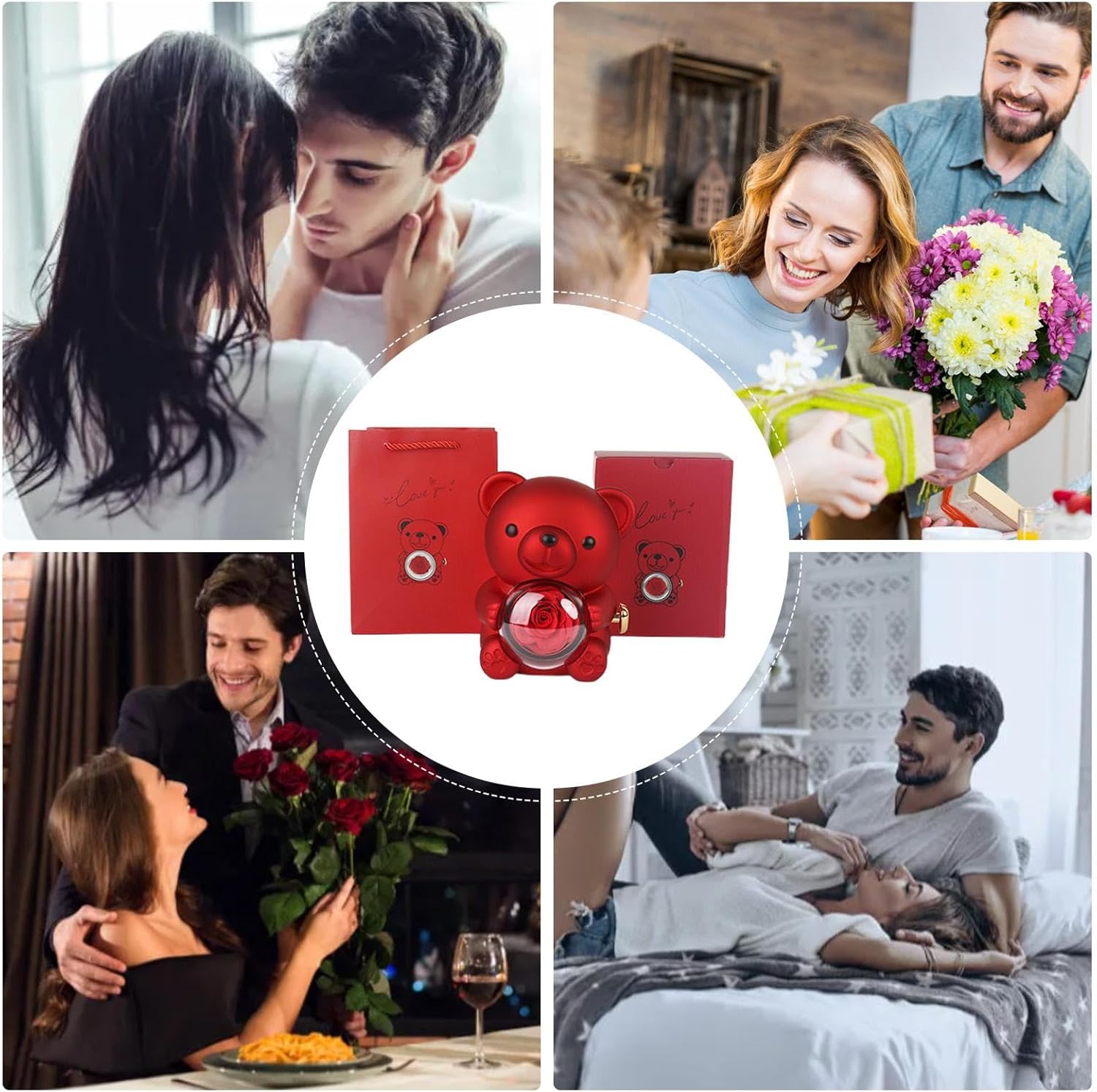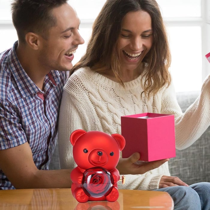 Bear Necklace Case - Romantic Bear and Rose Jewelry Box